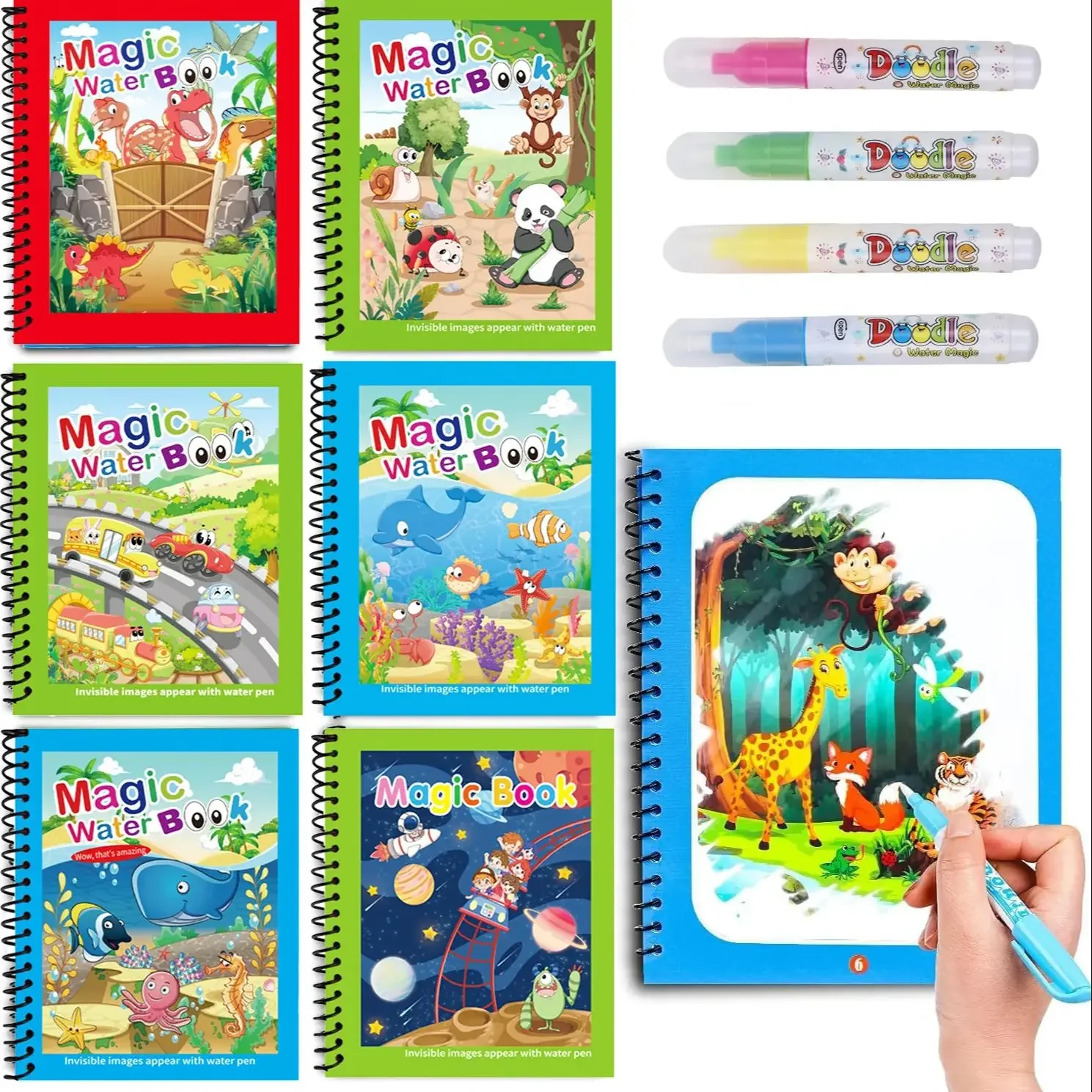 Carte de desen cu apă reutilizabilă, carte magică cu apă, bloc de pictat magic fără mizerie cu stilou cu apă reîncărcabil, jucărie educațională de învățare