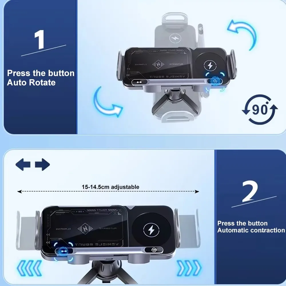 1. Suport auto cu încărcare wireless rapidă, clemă de navigare și încărcare wireless în același timp, oferindu-vă o experiență de condus sigură și convenabilă.